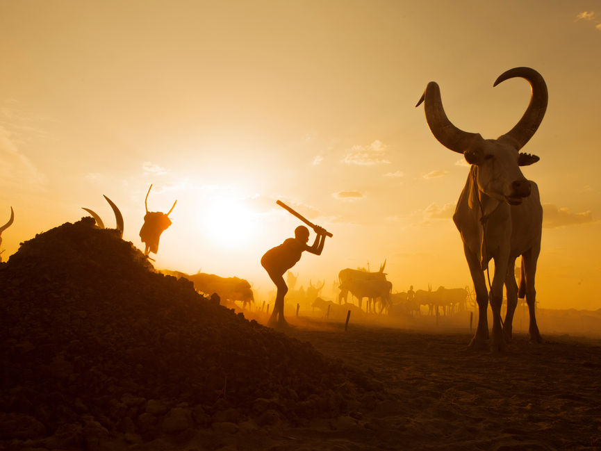 In a small village in the middle of the Nile river in Sudan, lives the Mundari tribes which are primitive tribes that graze a unique kind of cows with large horns, Mundari tribes consider those cows their most precious possessions that’s why they spend all their time protecting them and caring for them, each morning the tribe wakes up and start releasing the cows to feed, at the same time they collect the cows’ dung and mix it with sand and small stones t prepare t fire it, then they fire it in small groups that surround the cows in a dramatic scene that resembles a scary scene from a stage, the Mundari think that the smoke from that fire keeps the cows safe from the harmful flies that target them, the Mundari individuals are always armed to be able to face the thieves and gangs that aim to steel the cows, so they take turns monitoring and protecting the cows and sleep by their side. Its worth mentioning that Mundari tribes don’t consume the meat of their cows, they only drink their milk and shower with their urine thinking it’s useful for the skin, it is also put on the hair and head t give a blonde look due to the urea in it. Mundari cows are considered the most expensive cows in the south of Sudan where each cow costs 500 USD, which is so expensive if compared to other cattle that doesn’t exceed 40 USD, those Mundari cows are also offered as dowry for marriage thanks to their expensive prices.